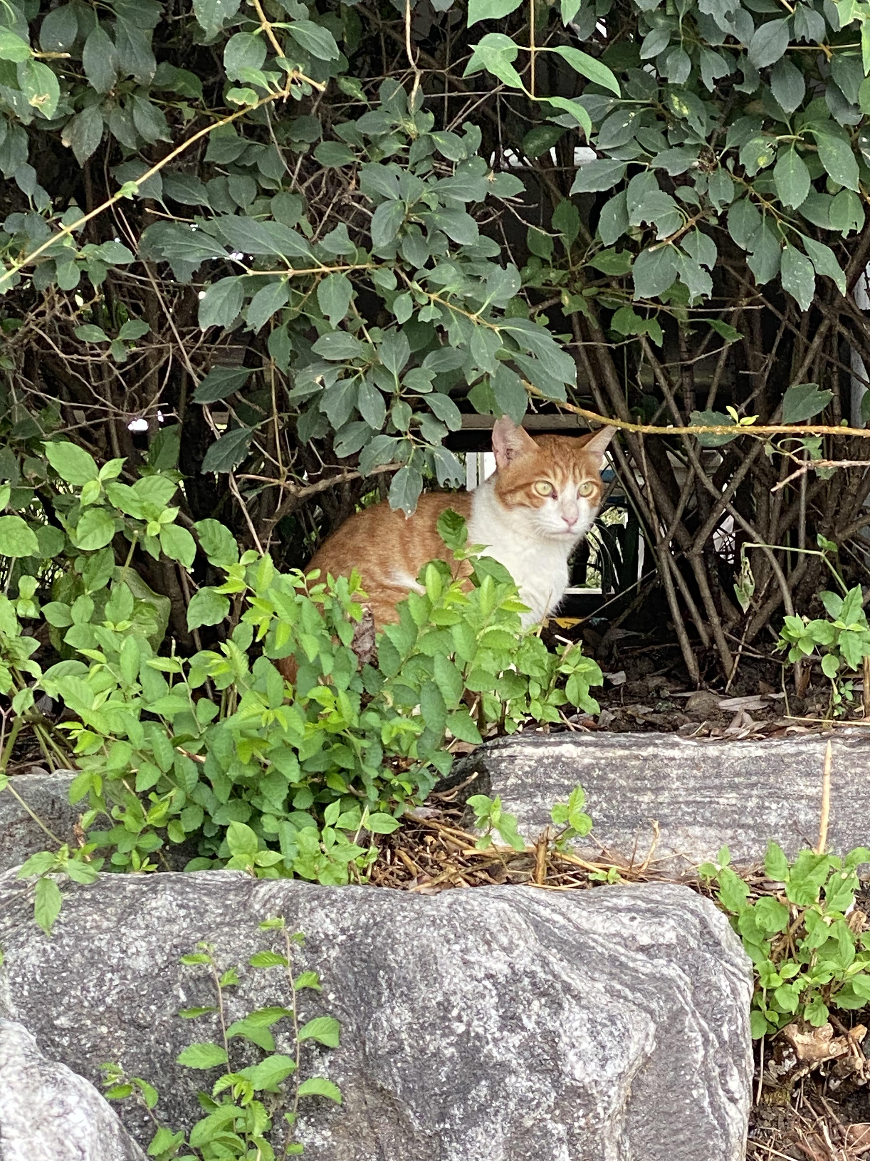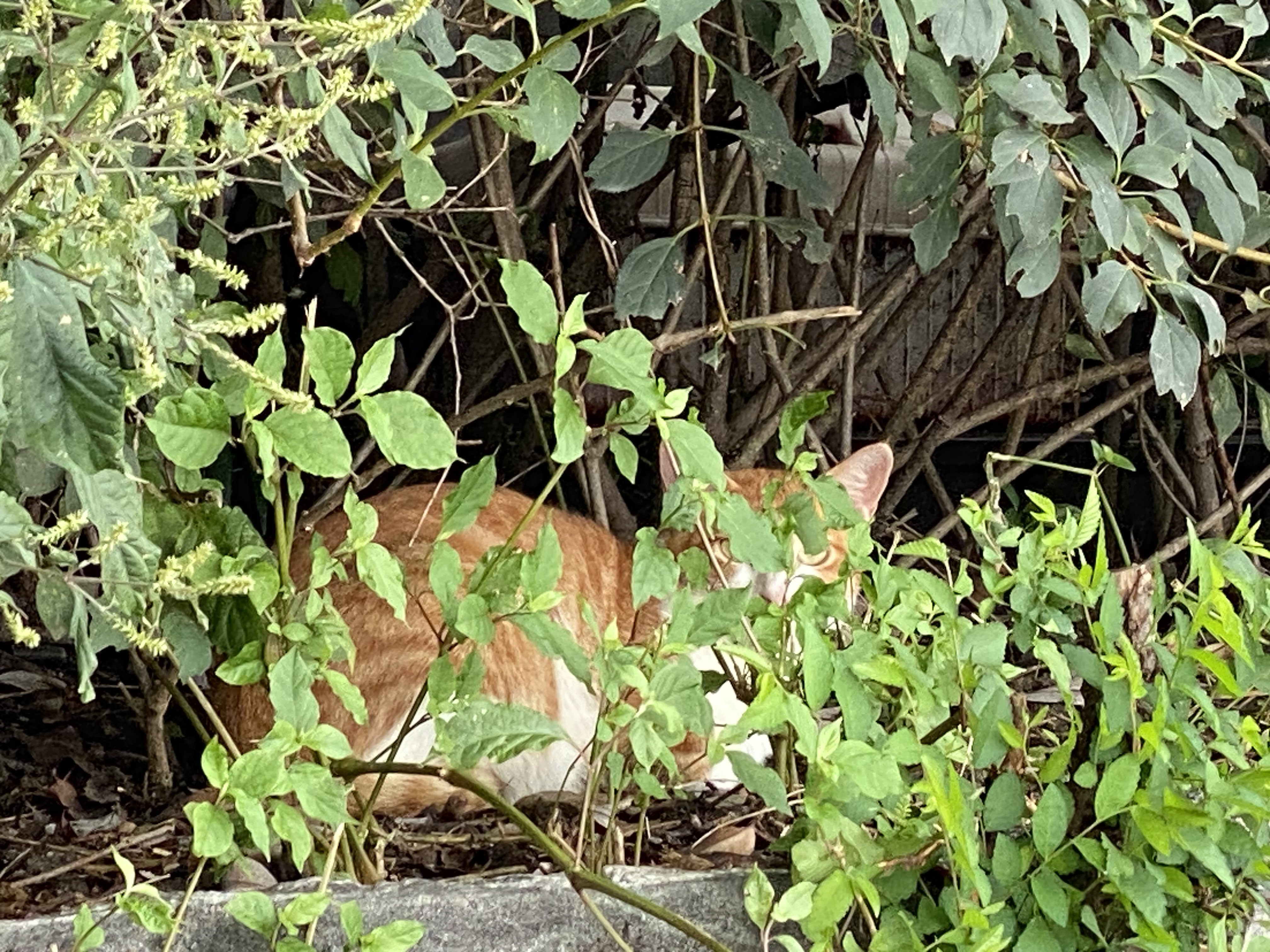 비가 많이 내려서 풀숲에 있는 고양이들은 어디로 피신했을까 싶었는데 건물 울타리 밑으로 가 있는거 같았다