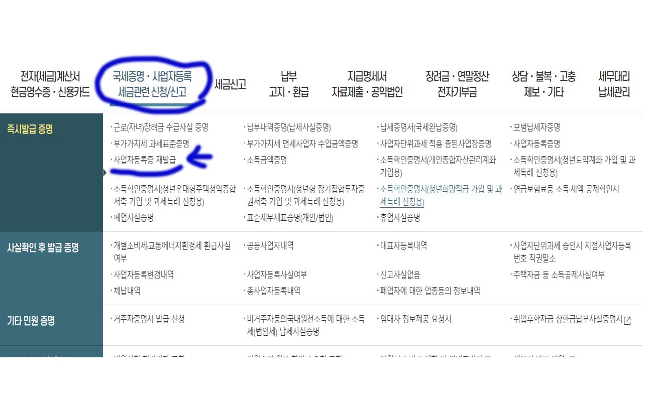 사업자등록증을 재발급받아보려고 합니다