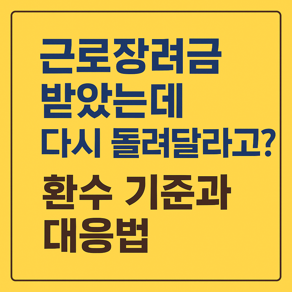 그런데 기뻐하며 받았던 근로장려금이 몇 개월 후 “환수 대상” 이라는 통지서와 함께 다시 돌려달라는 연락이 오면 당황스러울 수밖에 없습니다.