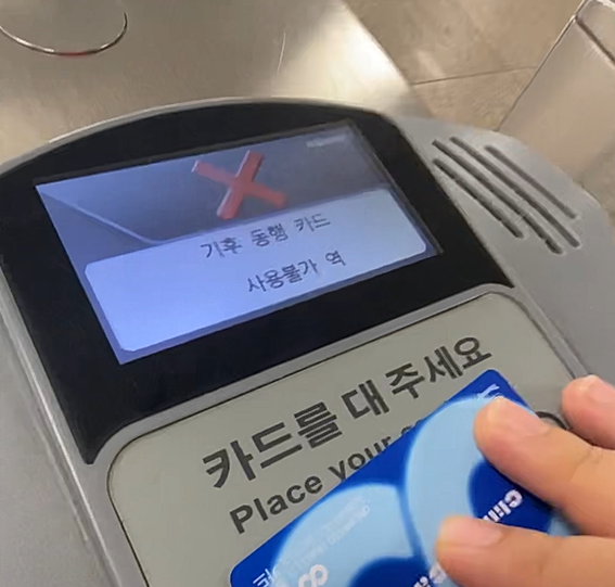 금정역에 도착을 해서 역무원 도움으로 다른 신용카드로 다시 카드를 찍었습니다