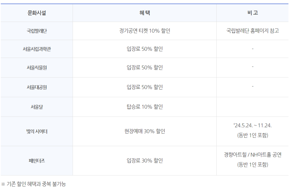 지원대상 : 기후동행카드 소지자에 대해 문화시설 입장 시 할인 혜택 제공 ※ 입장 시 본인 명의 여부 및 사용기간 확인