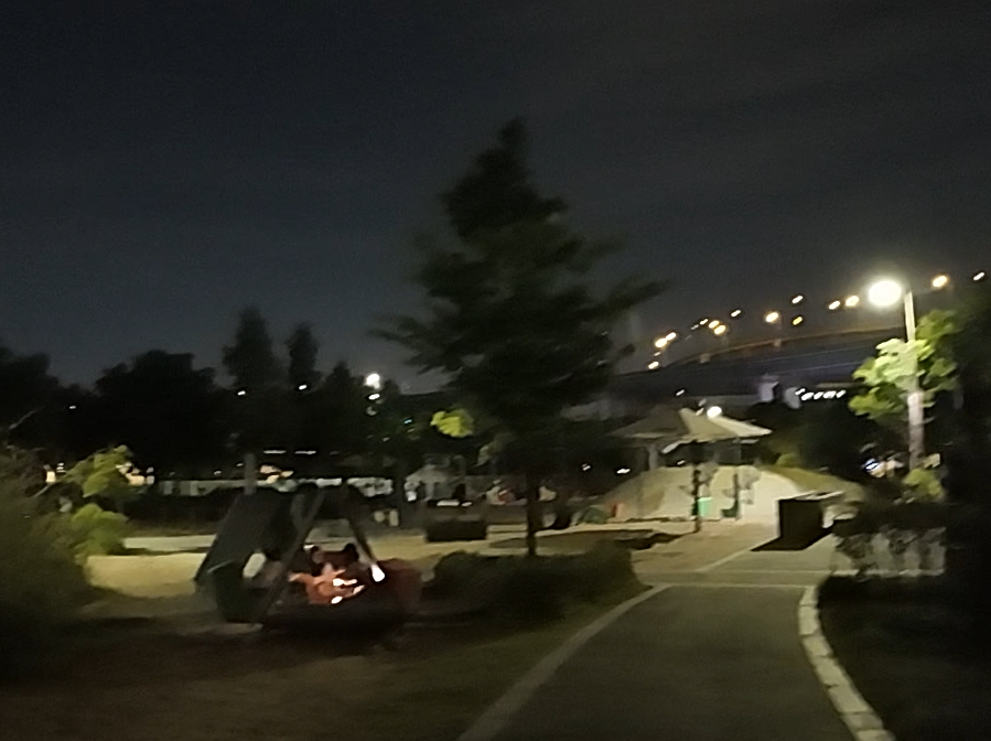 이시간에도 꽤 많은 사람들이 한강공원을 걷고 있었다