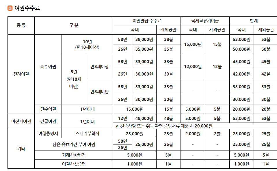 외교부 여권안내 홈페이지 [수수료 안내] (passport.go.kr)