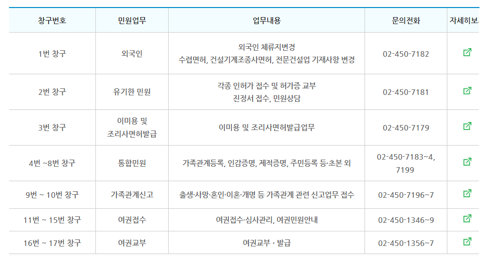 (매주 목요일 통합민원 및 여권 업무에 한해 20시까지 연장근무)