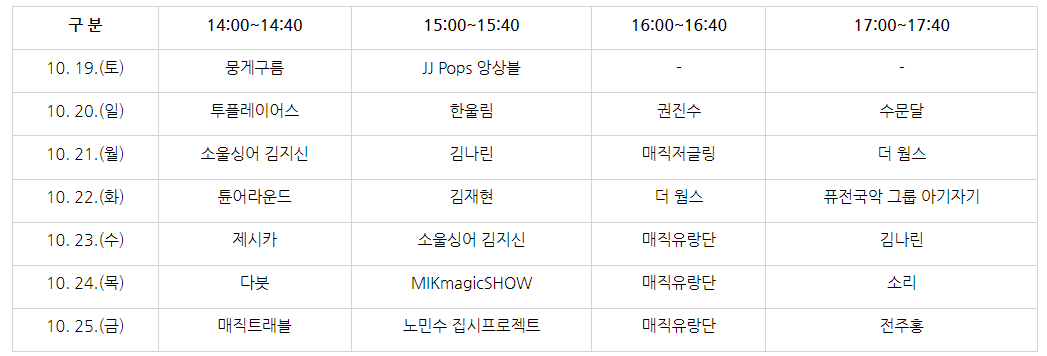 10. 19.(토) 18:00~19:15 하늘공원 중앙무대