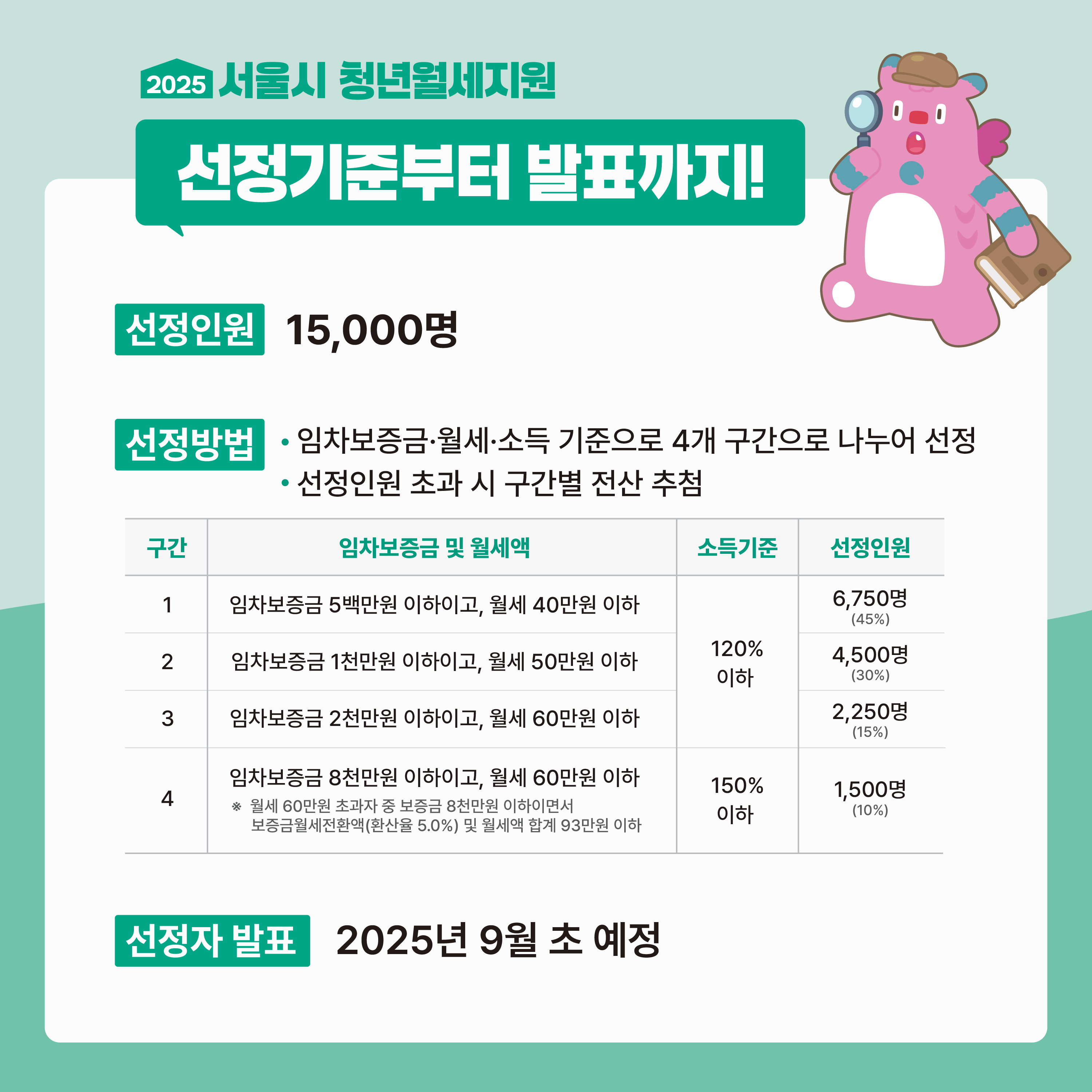 * 신청방법: 서울주거포털 (온라인 신청)