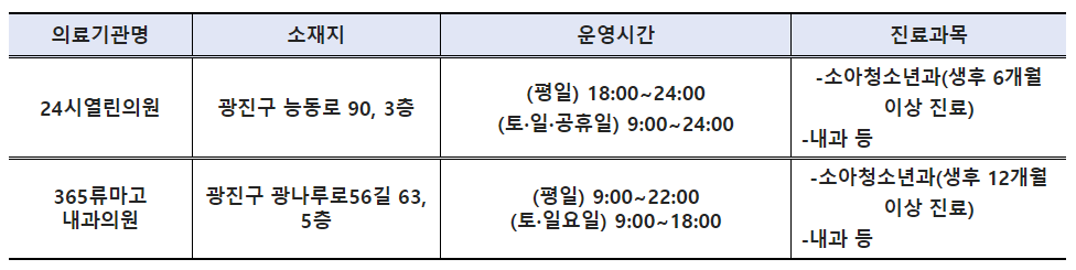 야간·휴일 소아진료기관 안내(목록) < 의료기관ㆍ약국현황 < 건강위치안내 < 알림마당 < 광진구