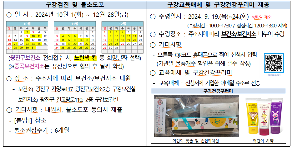 - 구강교육매체 및 구강건강꾸러미 제공