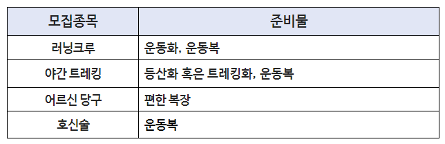 ◯ 종목별 준비물