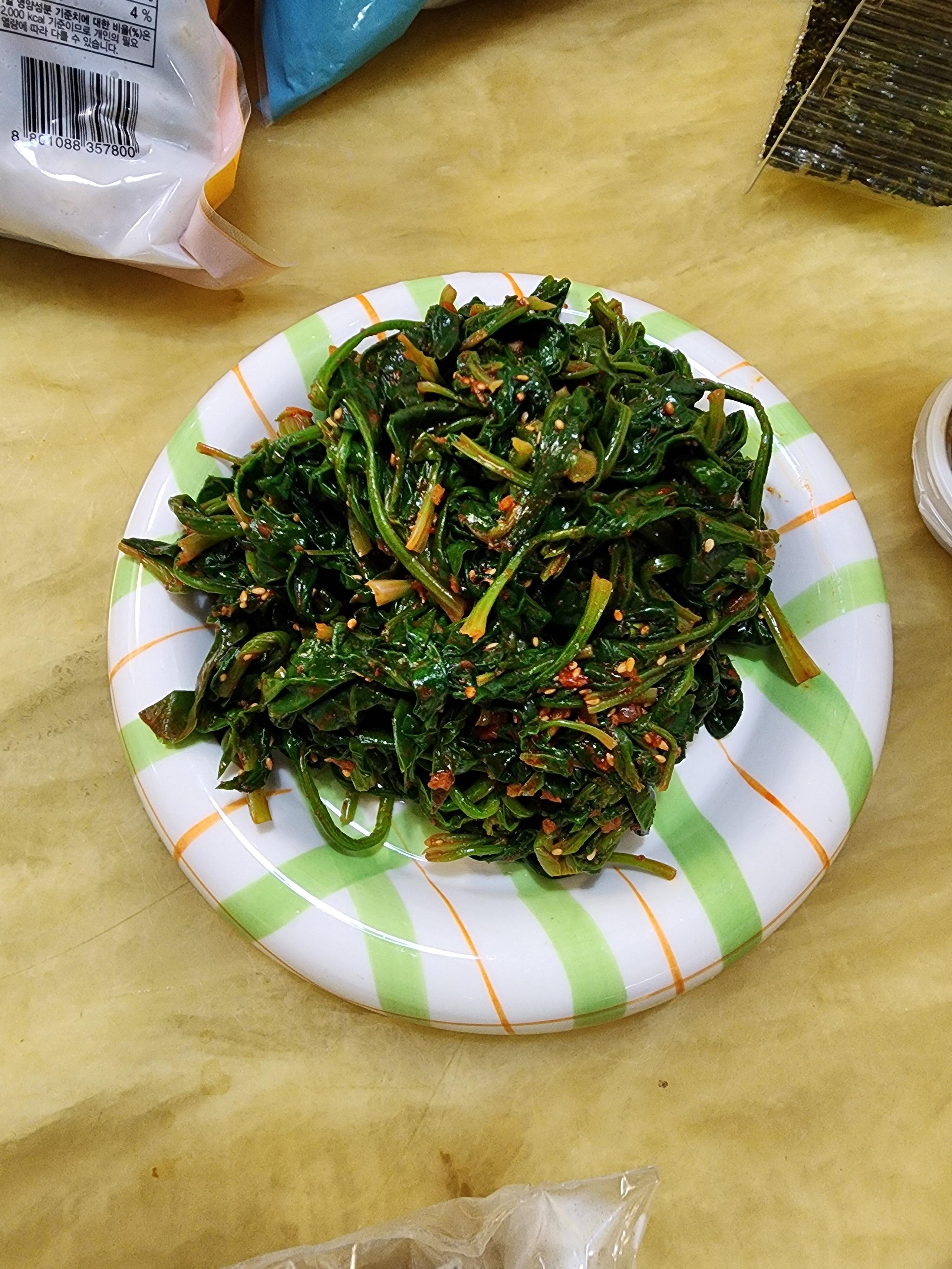 고추장을 넣어서 무친 시금치 나물로 김밥을 싸 먹어도 별미가 됩니다