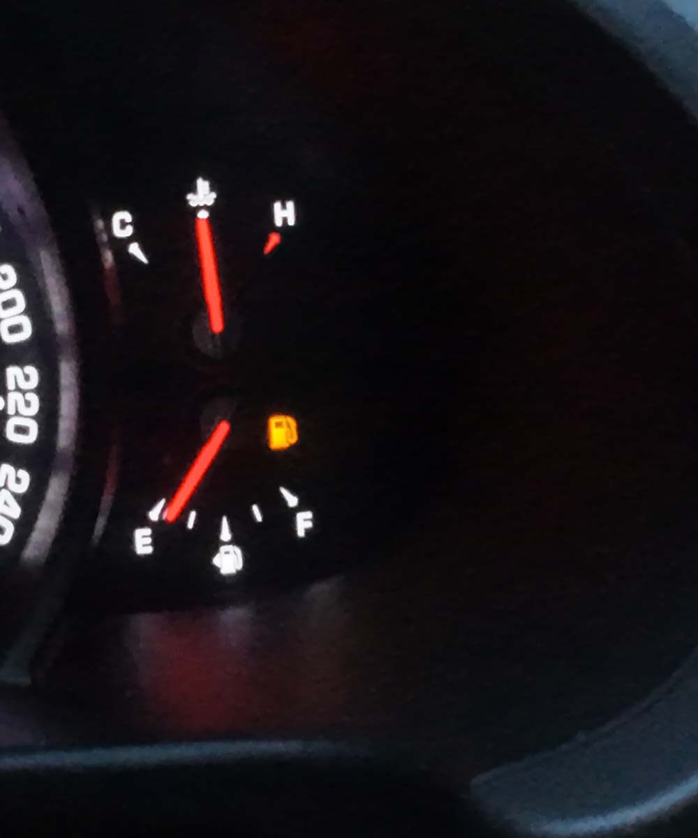 주유소가 보이지 않을 때 연료가 거의 소진된 상황