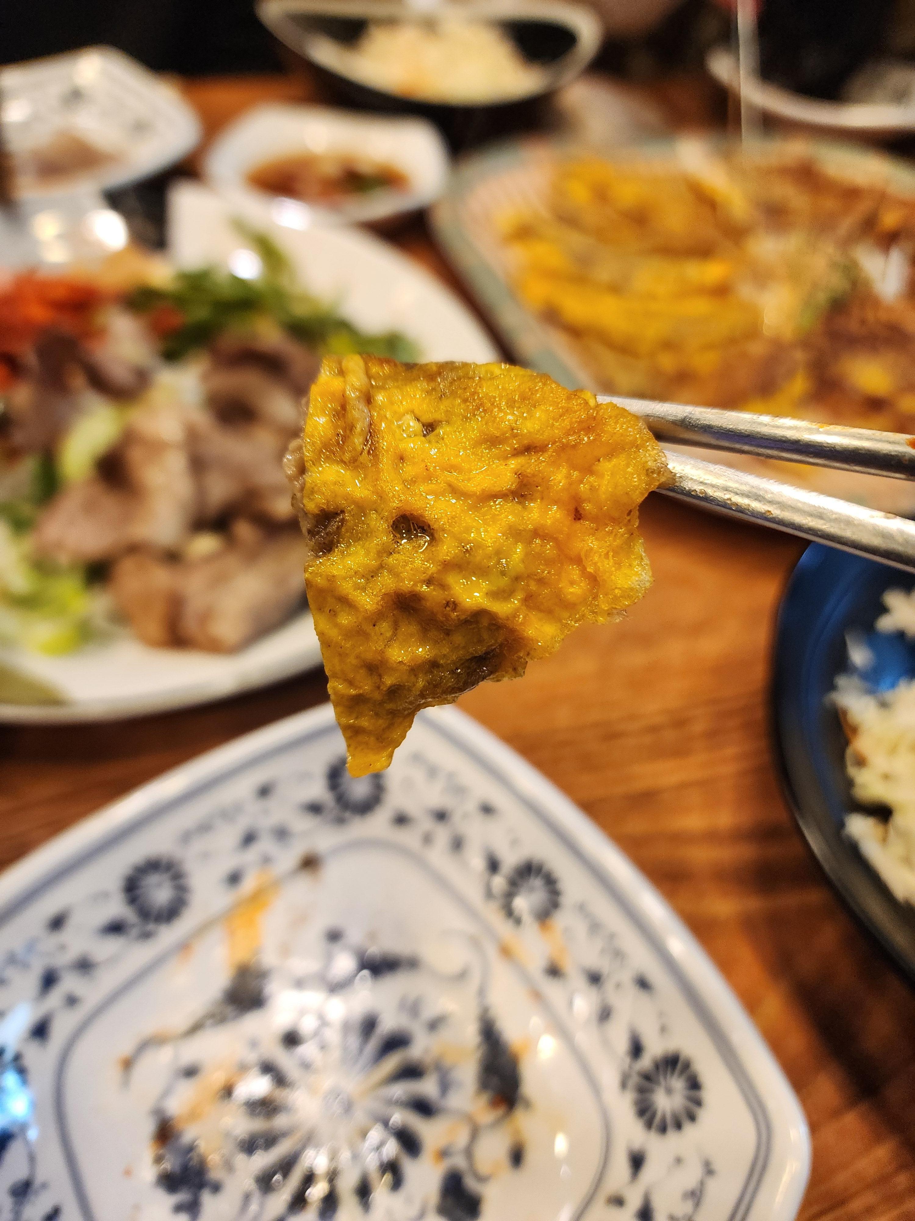 육전에 야채를 싸먹는것도 와사비 소스인지 모르고 잘못 먹었다..쎄게 왔습니다