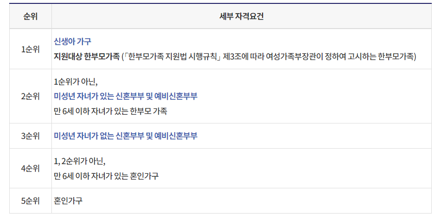 *동일 순위내 경쟁발생시 가점(자녀수, 청약납입, 거주기간 등)으로 우선순위 결정