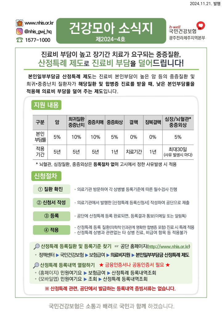 카테고리 없음 전북 전주 - 국민건강보험공단 요양비 및 산정특례 제도 안내 by 느린어르니 2024. 11. 21. 반응형 1. 전주시 2. 전주시 728x90 반응형 공유하기 게시글 관리 느린 어르니의 건강하게 배워가는 세상 이야기 저작자표시 비영리 변경금지 (새창열림)