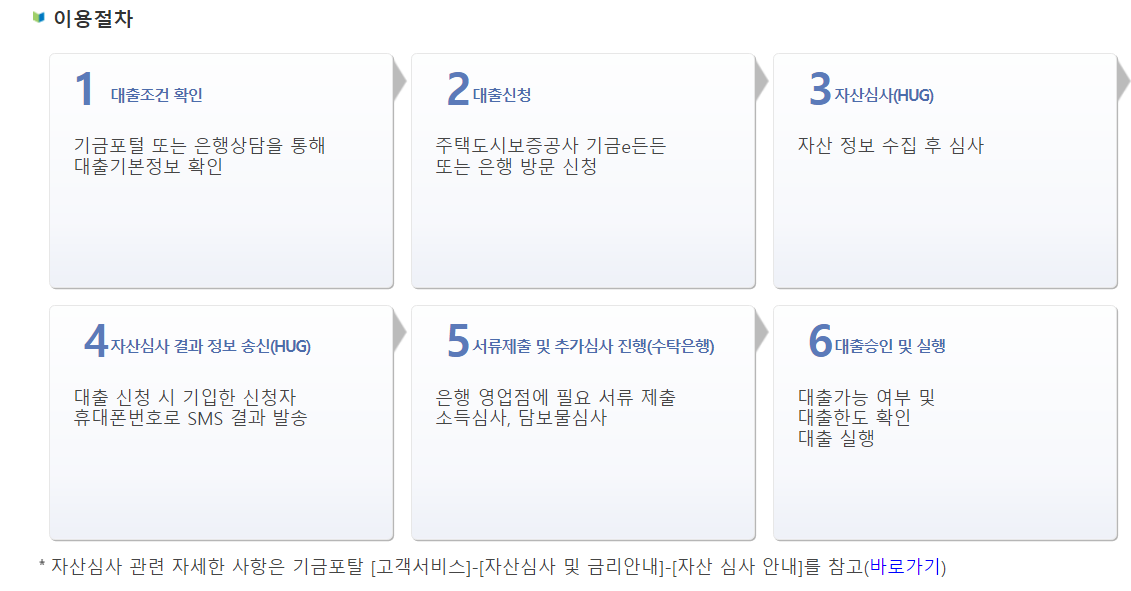 자산심사 관련 자세한 사항은 기금포탈 [고객서비스]-[자산심사 및 금리안내]-[자산 심사 안내]를 참고(바로가기)