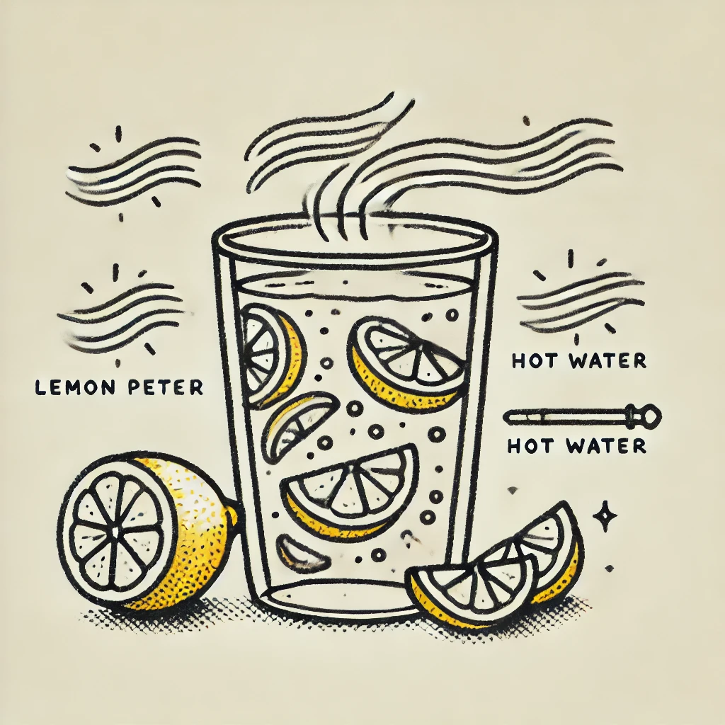 레몬즙을 약간 짜서 텀블러에 넣은 후 따뜻한 물을 붓습니다.
