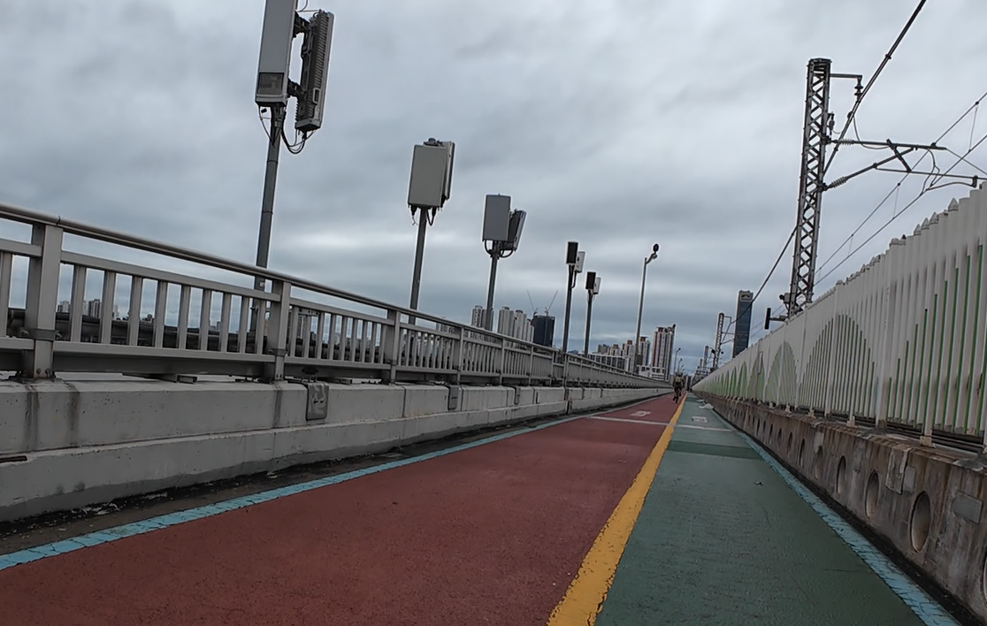 잠실대교 북단쪽을 걸을때는 자전거와 사람들이 많이 다니는길이 아닌 아래쪽 길을 좋아하는데 밤새 내린 비 영향인거겠지