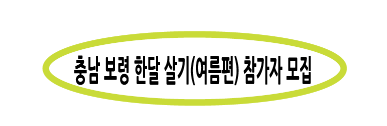 충남 보령에 머물면서 개별 자유여행 진행하여 관광자원, 지역문화예술, 역사자원, 지역축제 등을 체험하고 개인 SNS 등에 홍보하는 한달살기 참가자를 모집한다고 합니다