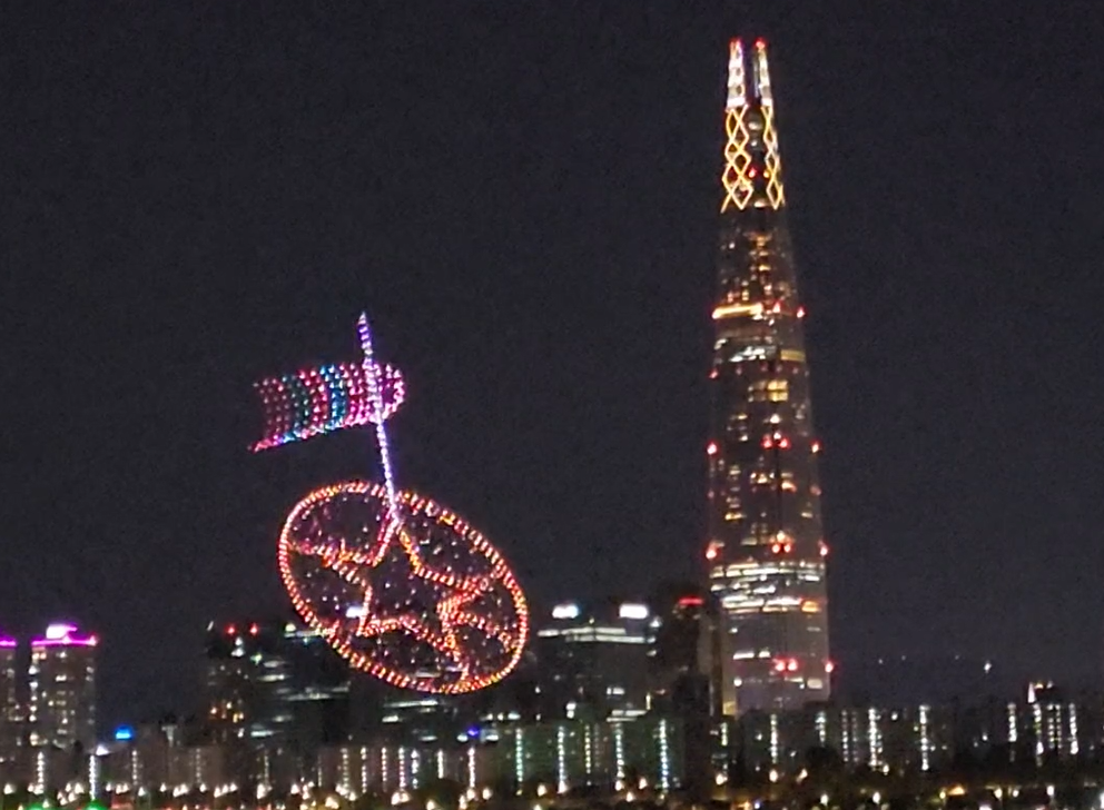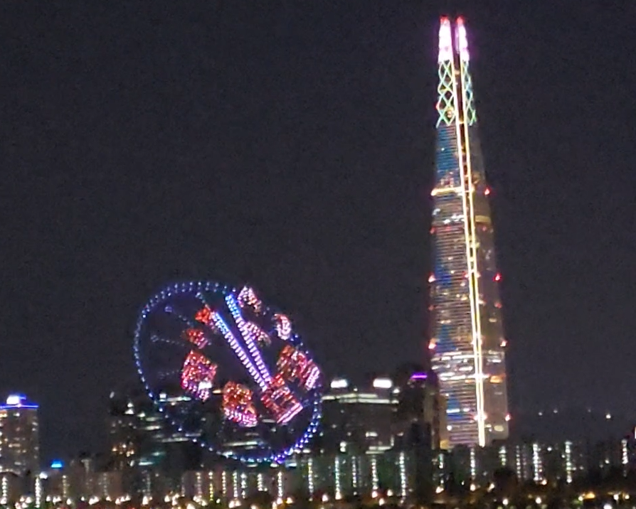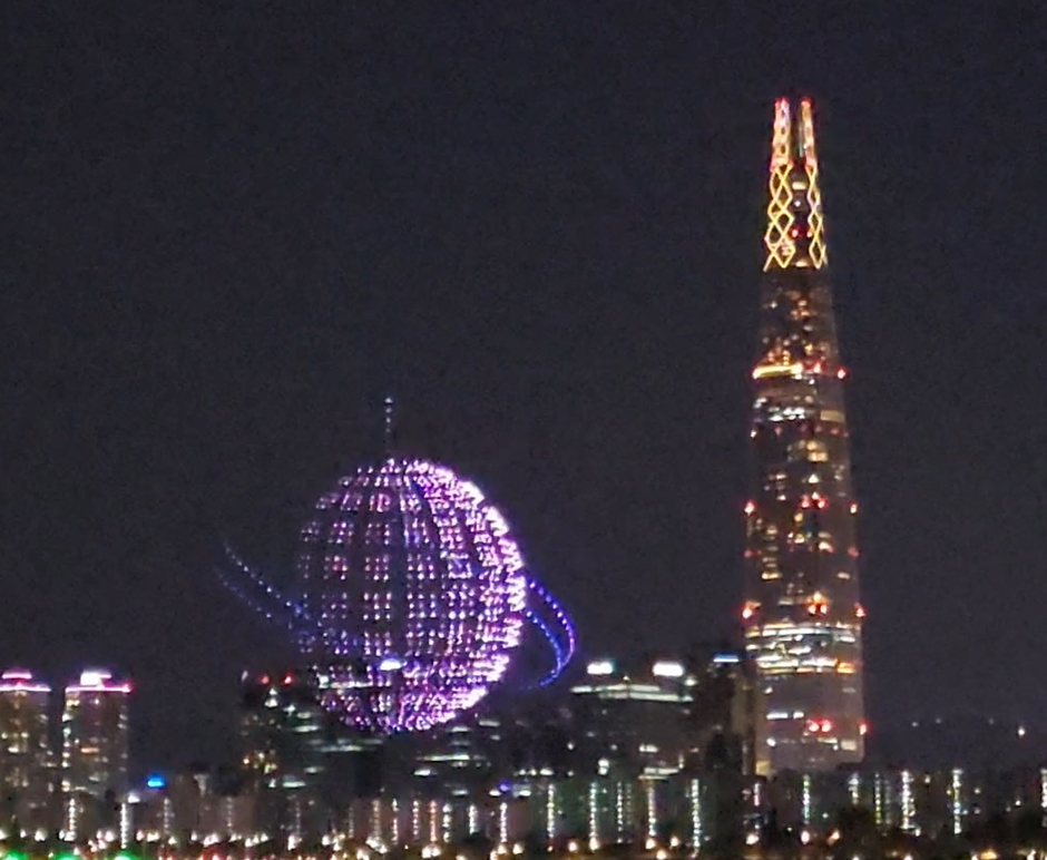 롯데타워옆으로 연출된 드론쇼가 굉장히 멋지게 느껴졌습니다