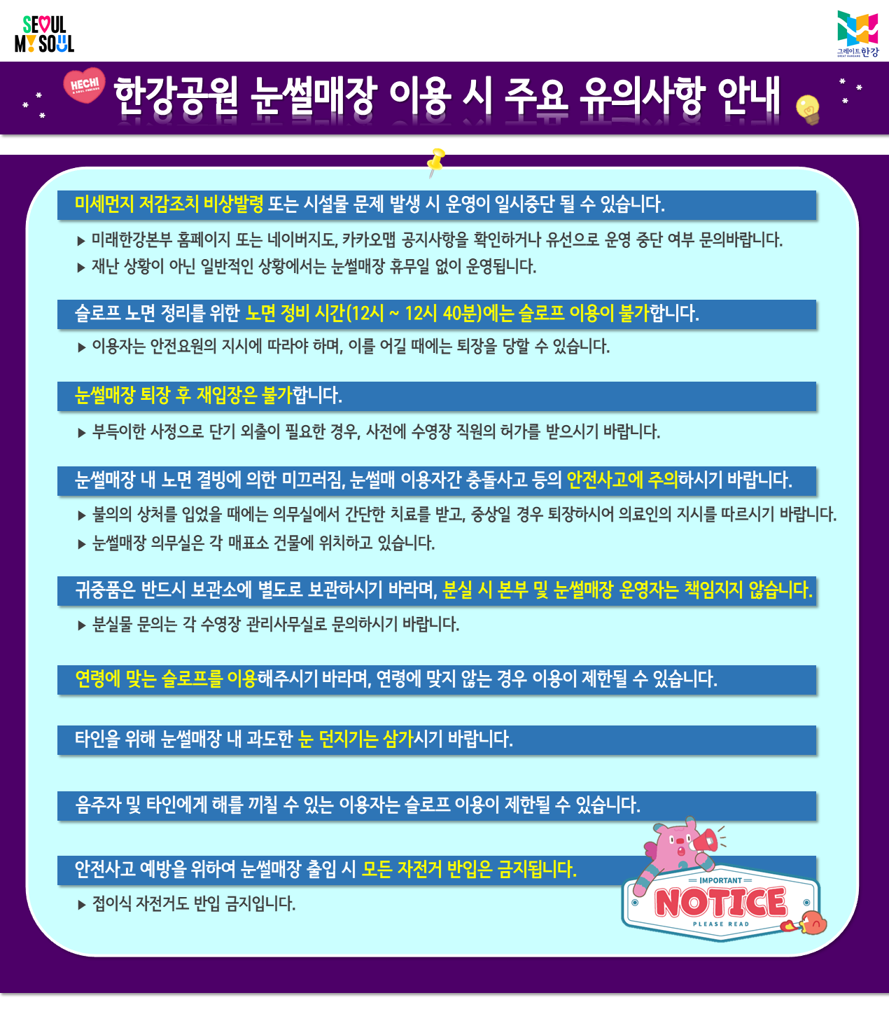 한강공원 눈썰매장을 기다렸을 이용 시민분들의 너른 양해 부탁드리겠습니다.