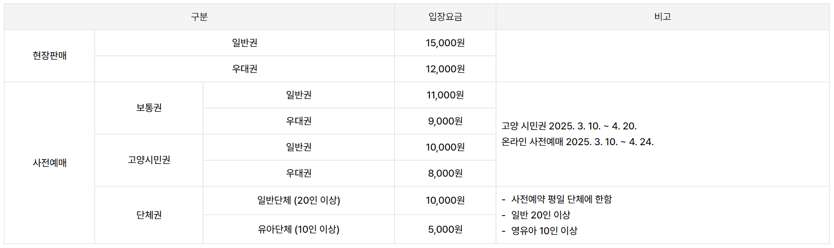 입장권 현장판매 기간2025. 4.25. ~ 5.11.