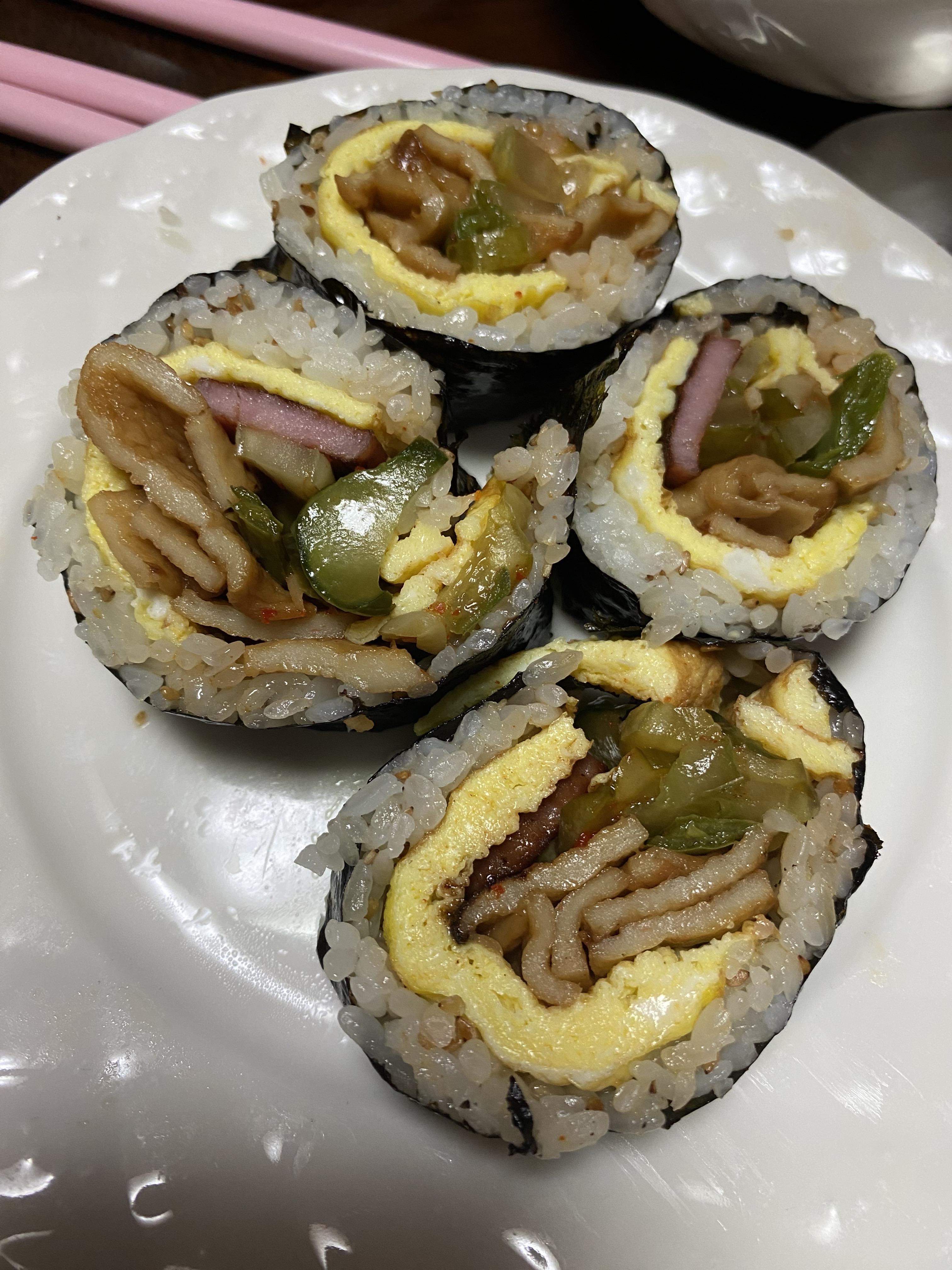 오이지김밥을 싸먹은 오늘은 우엉을 넣어서 만들어 먹었습니다