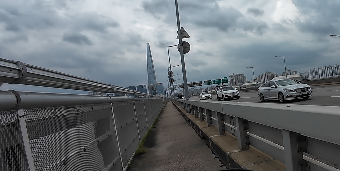 맞바람을 이겨내며 잠실대교를 건너는 것은 정말 시원하고 기분 좋은 경험입니다