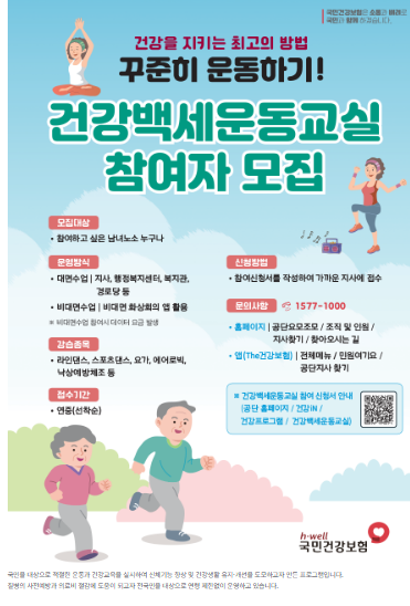 관련문의 1 577-1000 혹은 각 지사 건강백세 운동교실 담당자 문의