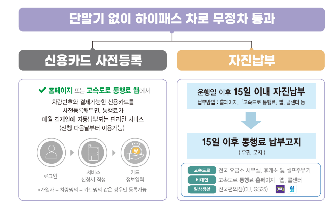 다만 신용카드를 사전등록하거나 15일 이후 통행료를 자진납부 해야합니다