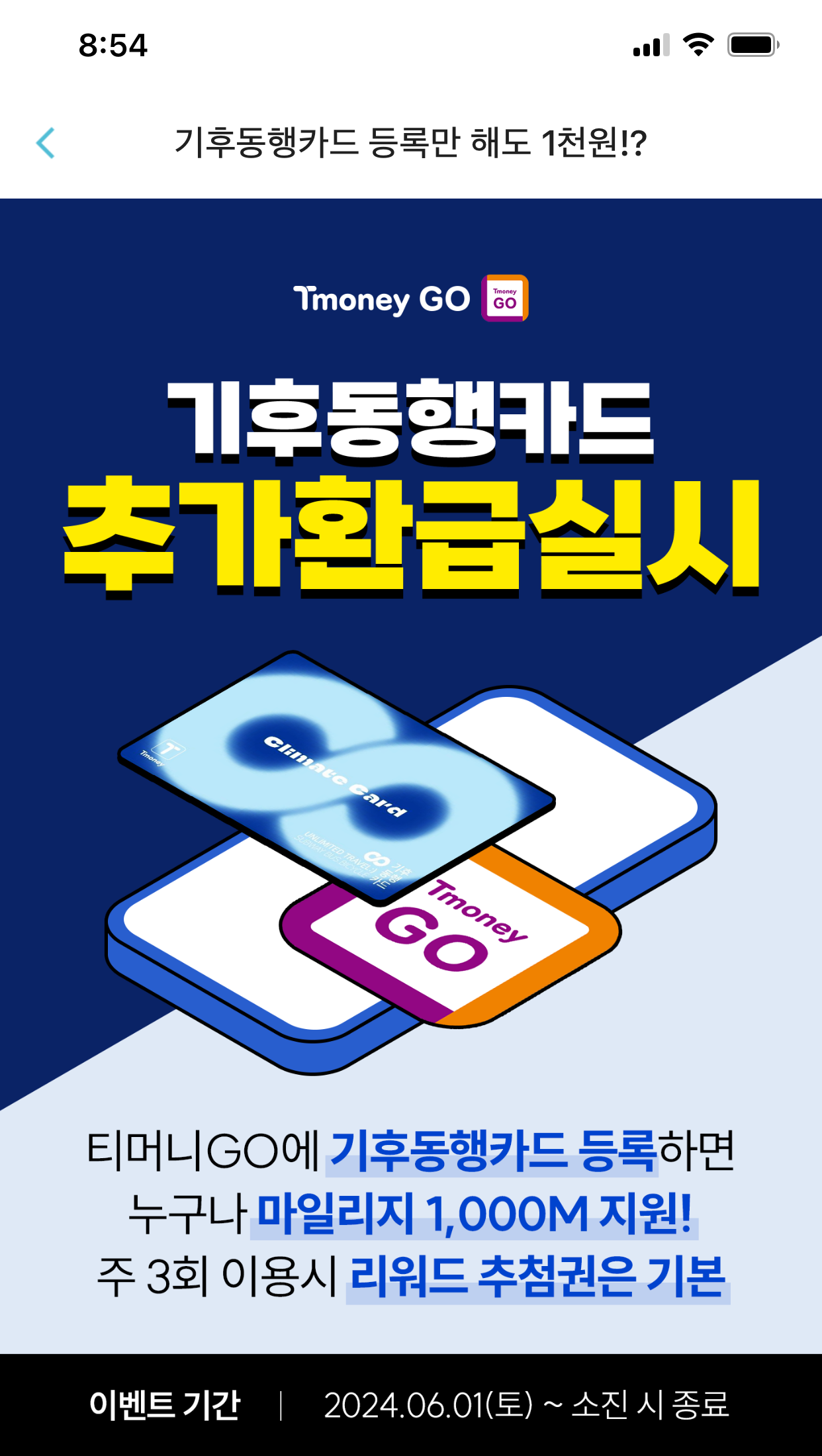 기후동행 카드 등록만 해도 1천원..T머니 Go어플 교통비할인 마일리지 적립