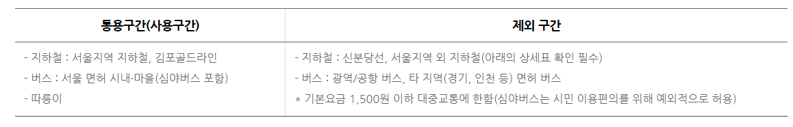 ※ 예외적으로 서울지역 내 역에서 승차 후, 4호선(별내별가람~진접), 5호선(미사~하남검단산), 7호선(석남~까치울), 진접선(전구간)에서 하차하는 것은 가능합니다.(해당 역에서 승차는 할 수 없음)