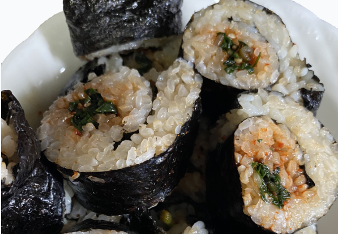 밥을 양념해서 할때는 김밥 재료에는 김치만 넣는 경우가 많다