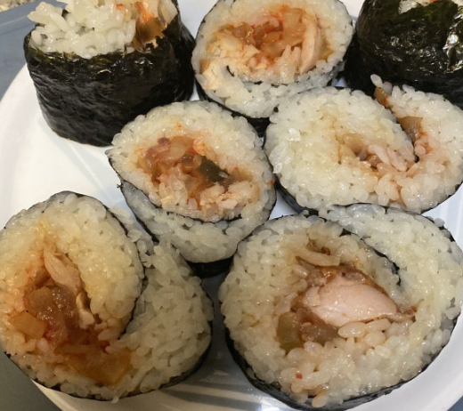 김치로 김밥을 쌀때는 삼겹살과 같이 넣어 싸서 먹어도 맛있다