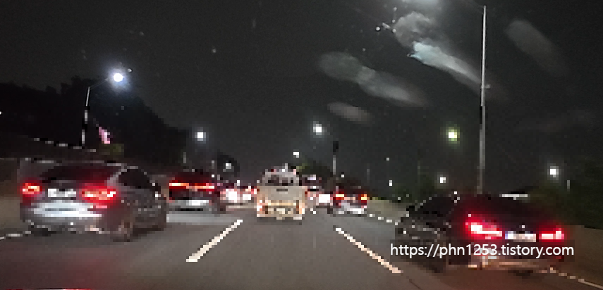 또한 어두운 환경에서는 빛에 대한 민감도가 올라가면서 상대 차량 불빛이 번져 도로 인식이 더 어렵게 됩니다.