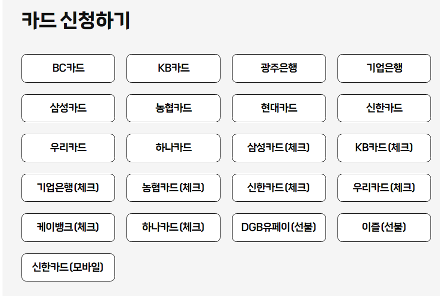 ※사용 수단 별 혜택 적용 : 신용카드 청구할인 / / 체크카드 통장 환급 / 선불카드 마일리지 적립