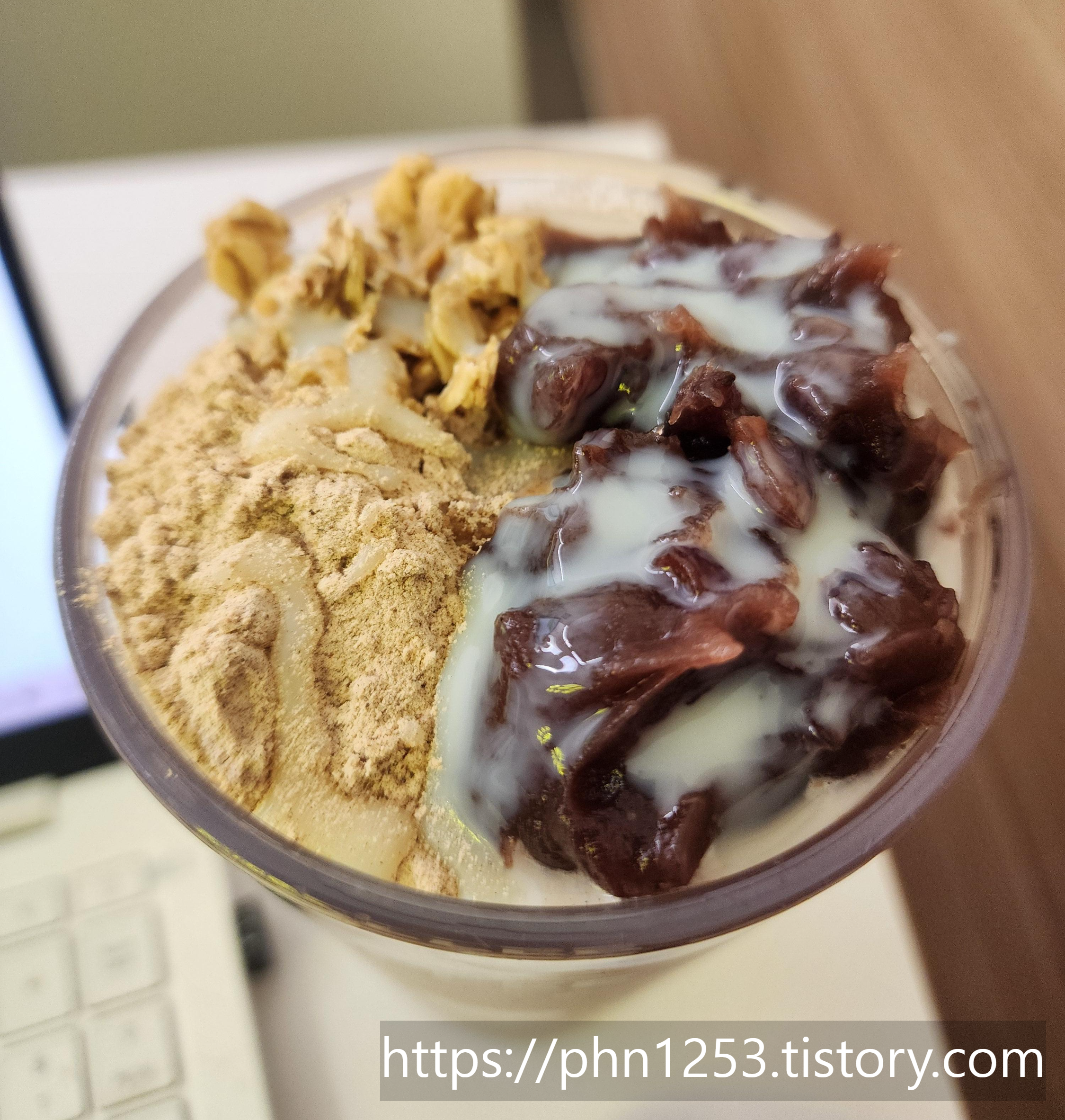 집에서 만들어 먹는다면 팥과얼음 우유만 넣어먹는다