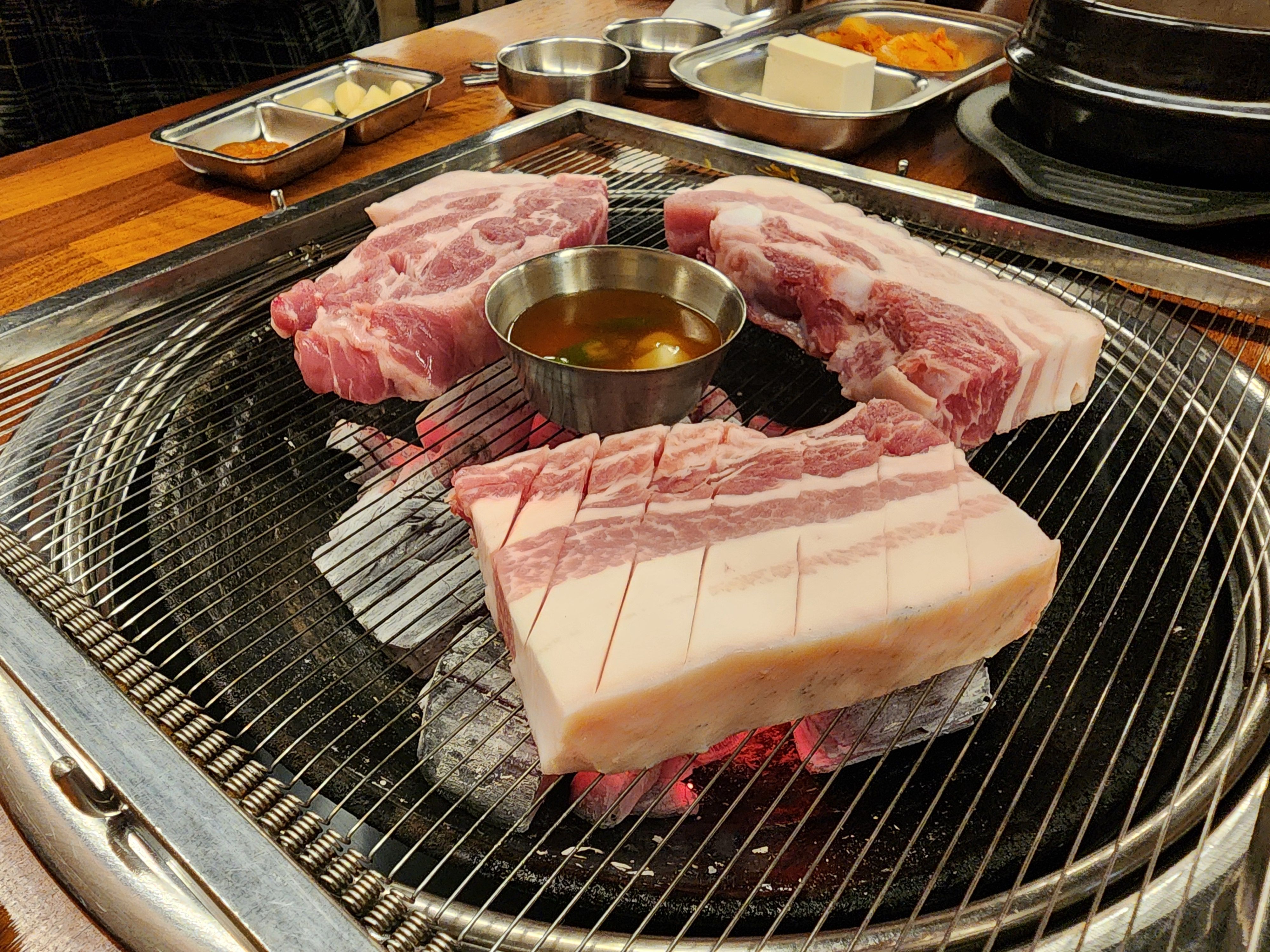 간장 또는 다양한 소스로 맛을 낼 수 있어요: 삼겹살에는 쌈장, 고추장, 마늘 소스 등을 찍어 먹으면 더욱 맛있어요. 간장과 고추장을 섞어 만든 소스도 좋은 선택입니다.