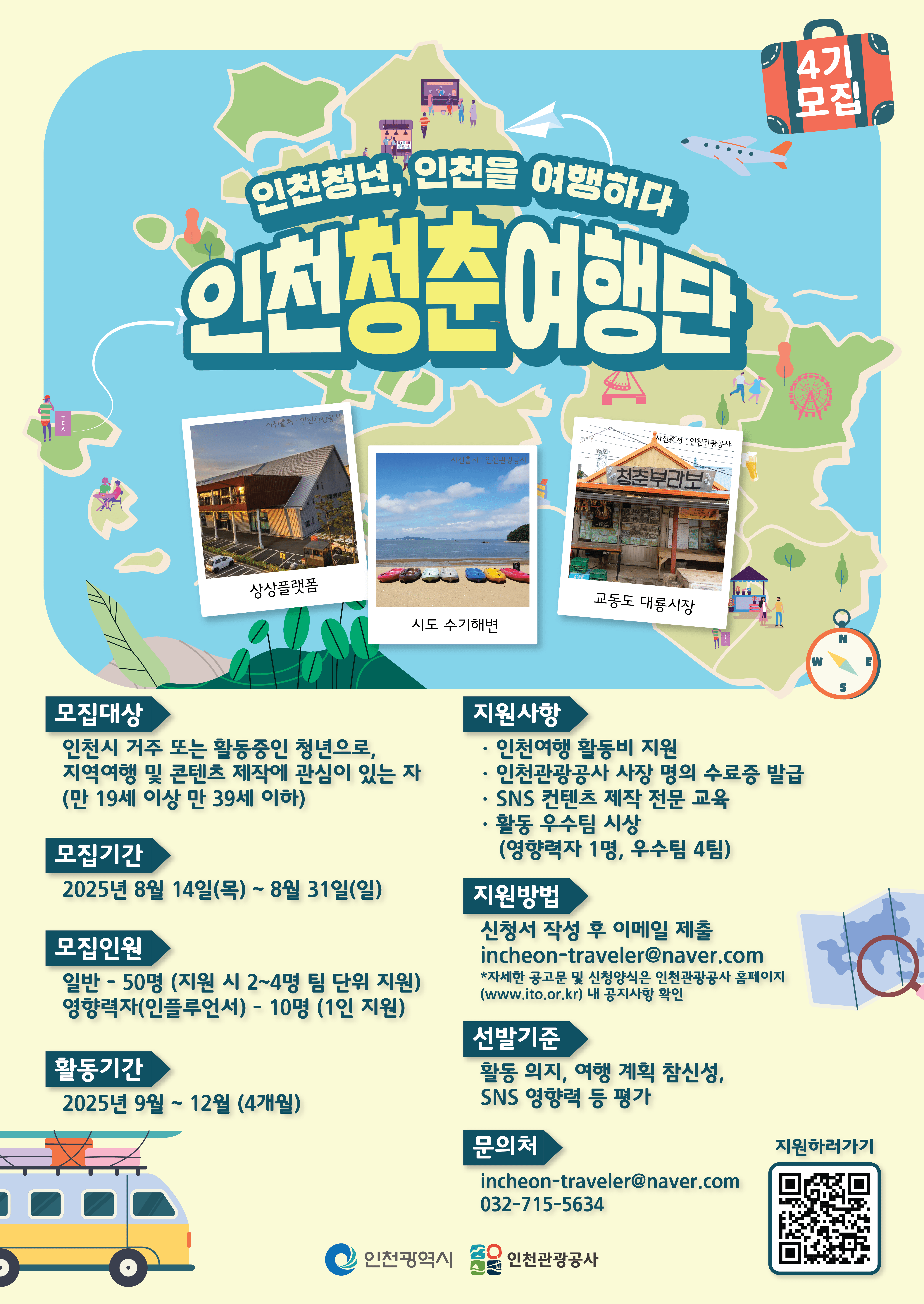 「인천청춘여행단 4기」모집을 진행하오니 많은 참여 바랍니다.