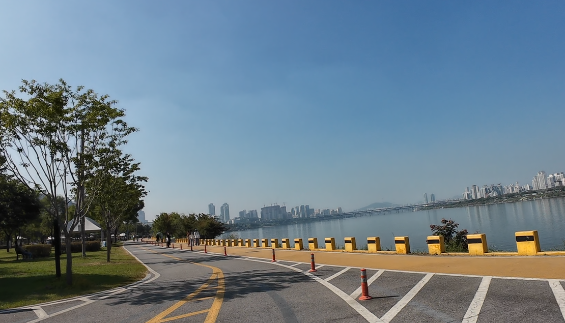 잠실한강공원은 한강을 따라 있는 대표적인 공원 중 하나입니다. 이곳에는 많은 사람들이 자전거를 타고 즐길 수 있는 자전거 도로가 있습니다. 잠실한강공원 자전거 도로는 한강을 따라 길게