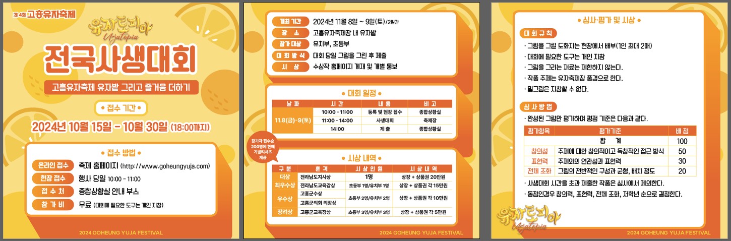 [전남 고흥군]_제4회 고흥유자축제, 유자토피아 전국 사생대회 개최_[2024년 11월 8일 ~ 11월 9일(토) / 2일간]