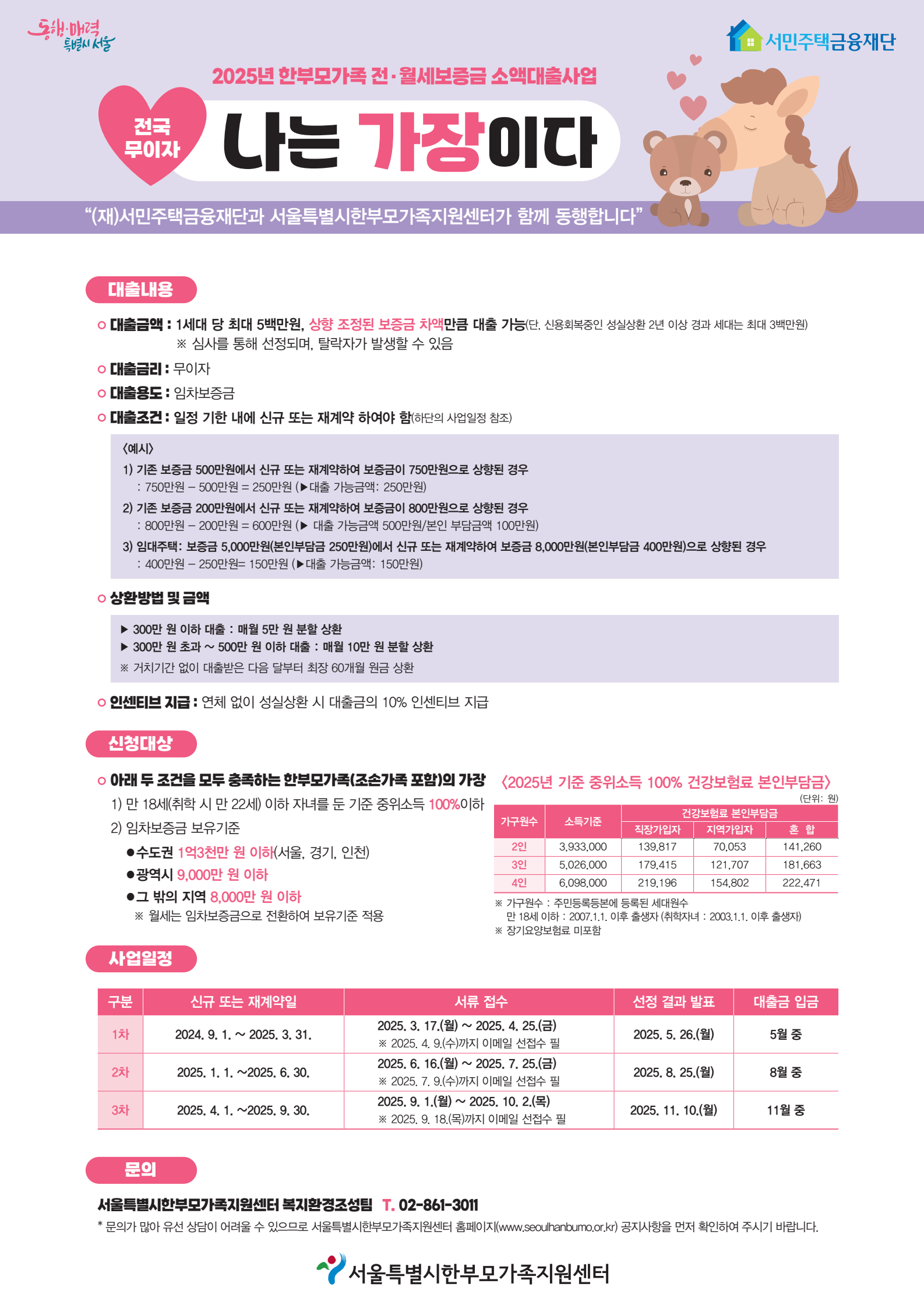 마. 제출서류: 홈페이지(http://www.seoulhanbumo.or.kr) 공지사항 내 2025년 3차 한부모가족 주거자금 소액대출연계 "나는 가장이다" 신청 안내 게시물 참조
