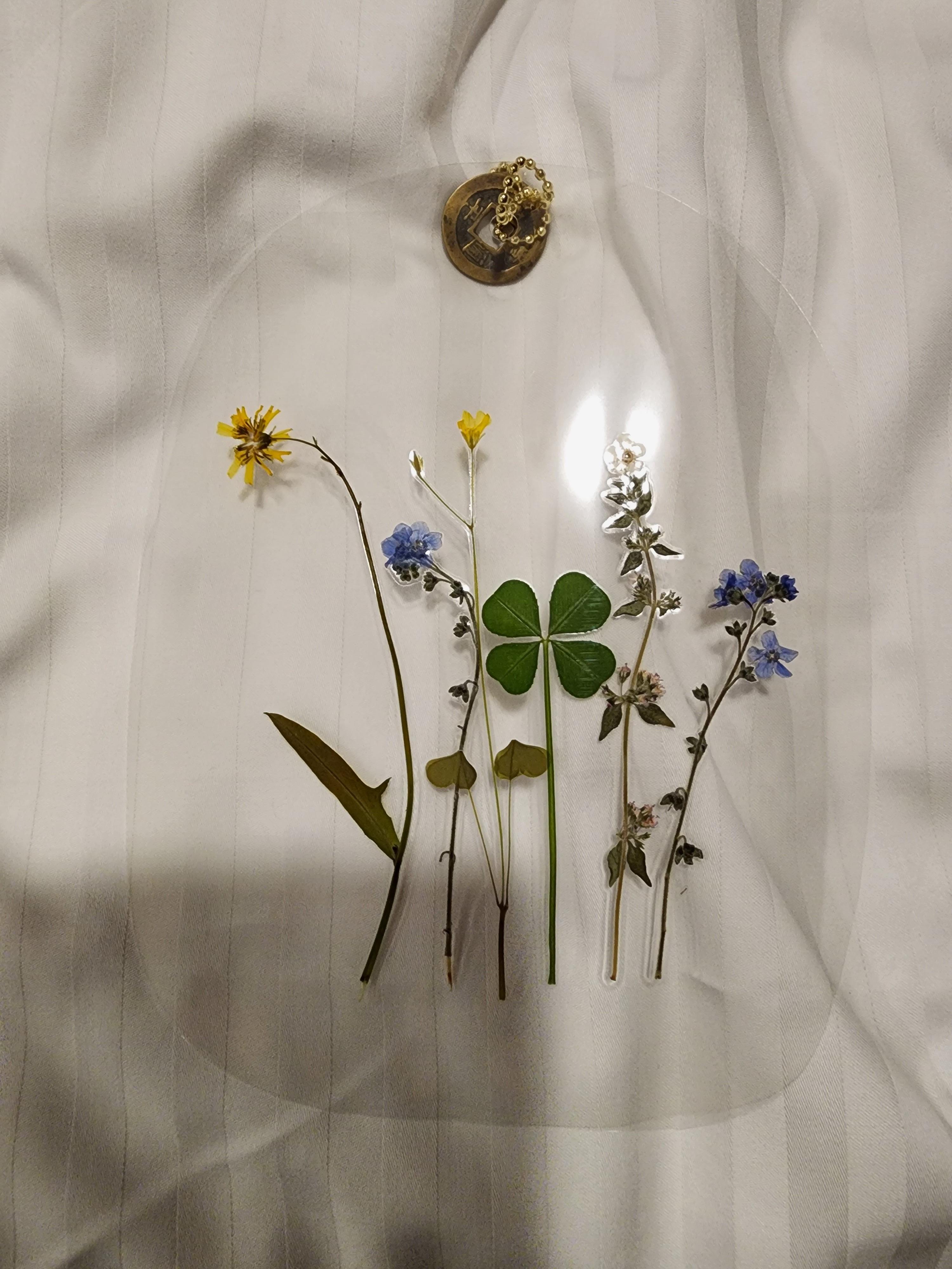 3. 수지 코팅(레진 아트) : 클로버를 투명한 수지로 코팅해서 보관하는 방법입니다. 클로버가 더욱 오래 보존되며, 장신구나 장식품으로 활용할 수 있습니다.