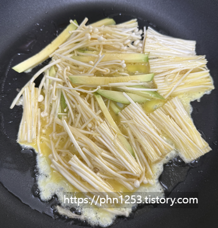 팽이버섯 대신 느타리버섯, 새송이, 표고를 섞으면 식감이 다양해요.