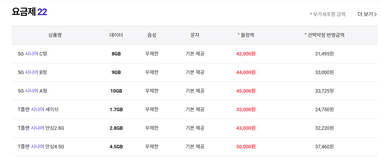 시니어 요금제를 검색해 봤는데 우리 어머니는 어떤 요금제를 한 거지 싶었습니다