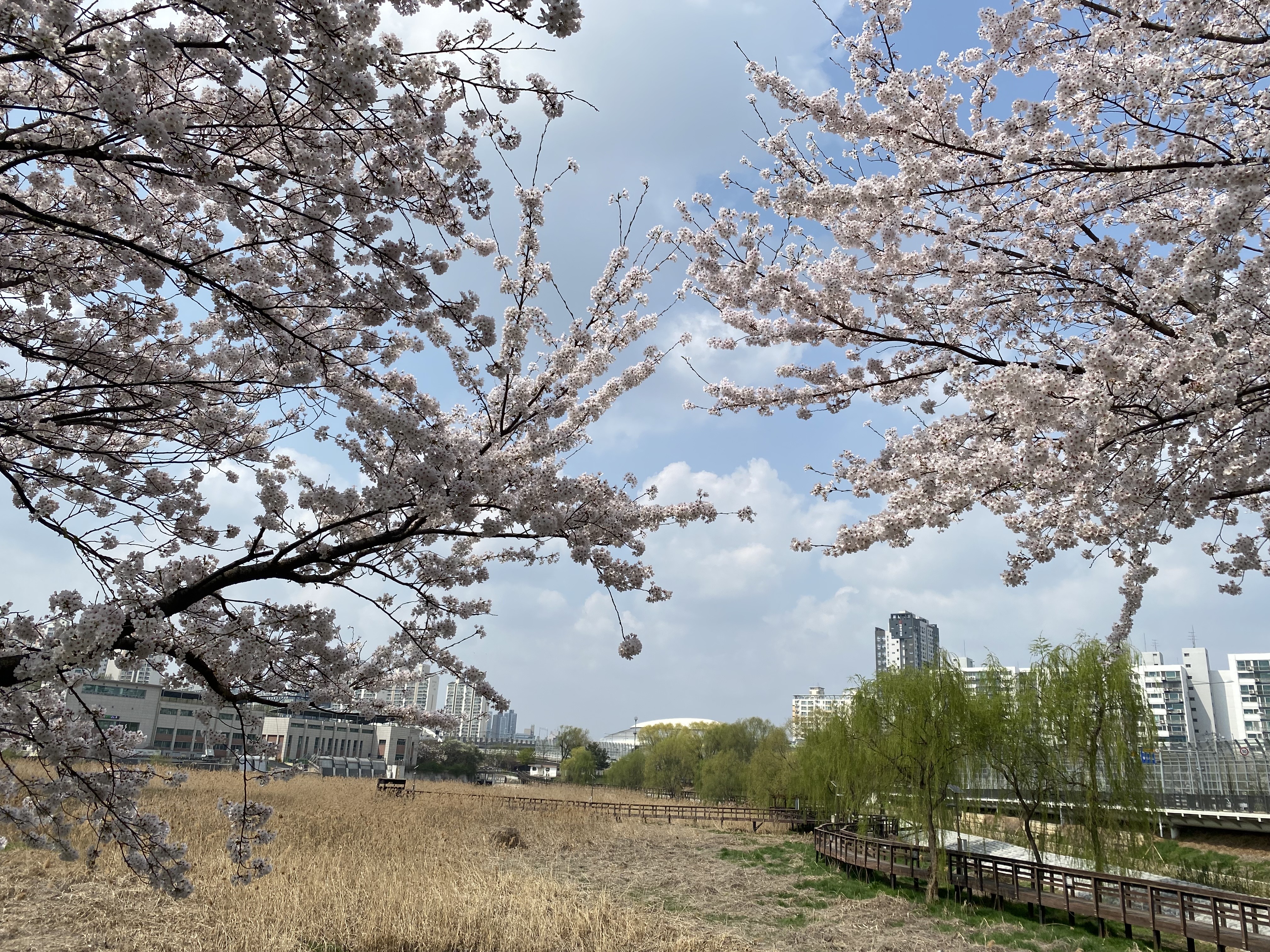 가까운 공원에서 바라본 벚꽃나무