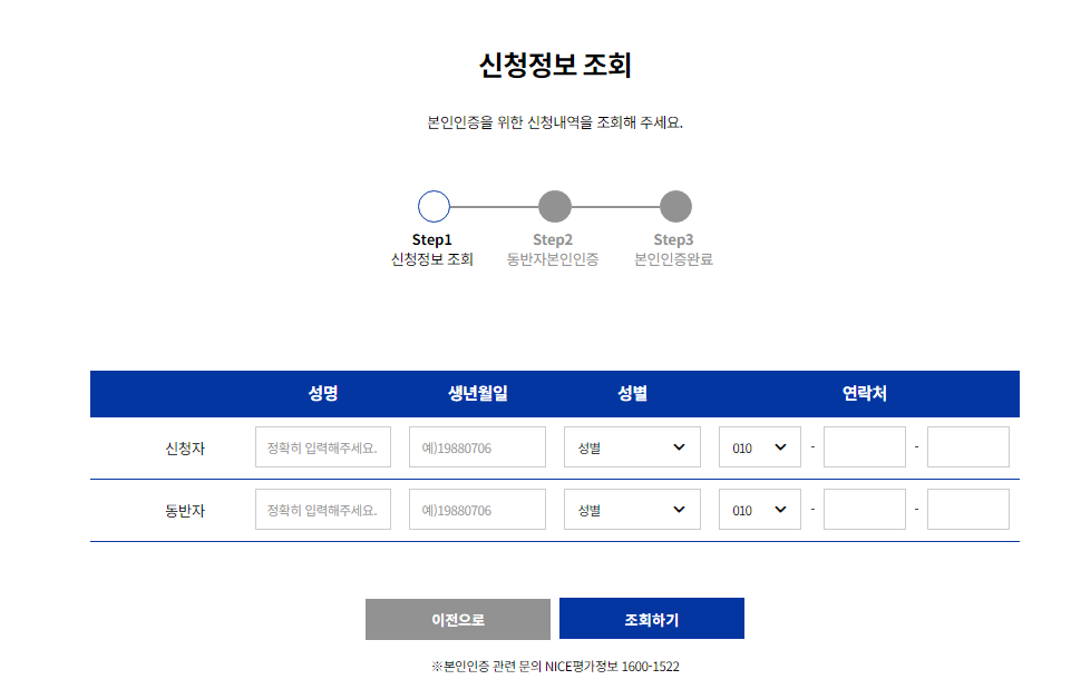 신청자 외 동반자가 있을 경우 동반자의 신분 확인을 위해 동반자 본인 인증이 필요합니다.