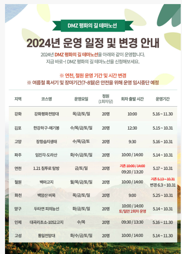 2024 디엠지(DMZ) 평화의 길 테마노선 천혜의 자연과 함께 떠나는 걷기 여행