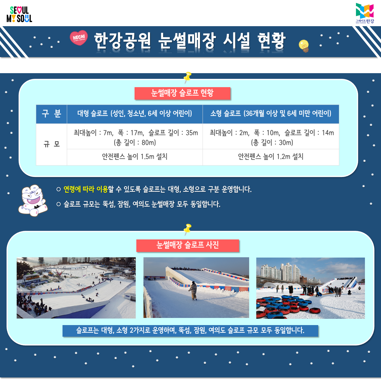 뚝섬·잠원·여의도 눈썰매장 운영개요