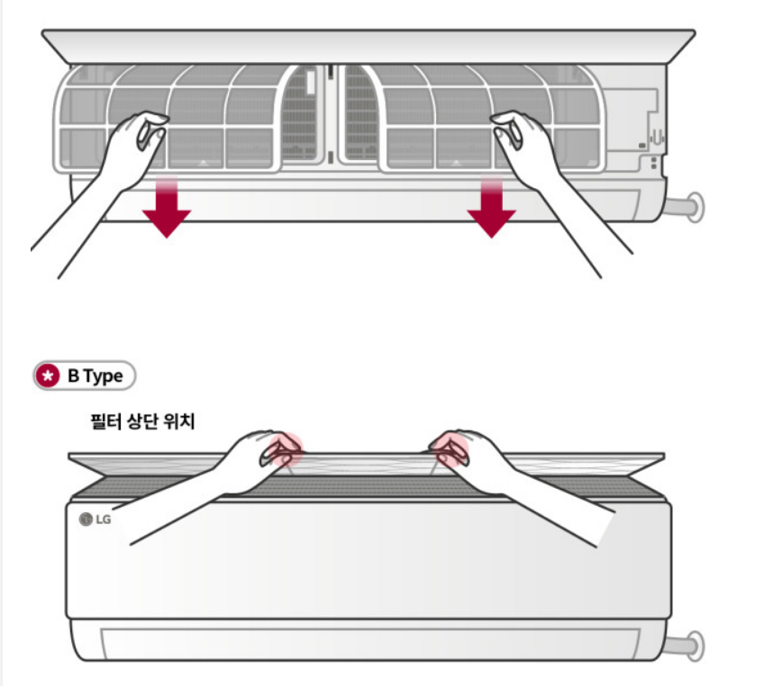 * 벽걸이 에어컨은 제품에 따라 필터 분리 방법이 달라요.